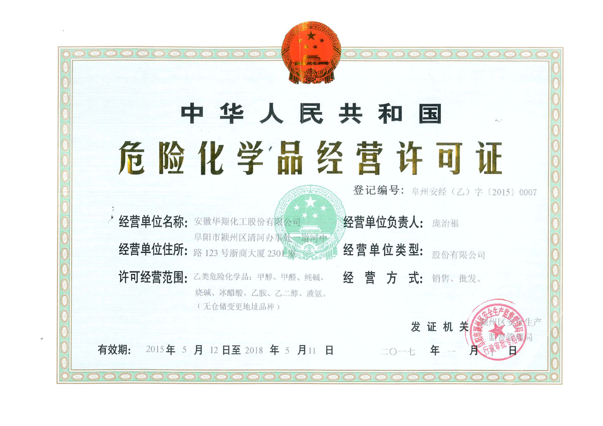 華翔化工危險(xiǎn)化學(xué)品經(jīng)營(yíng)許可證