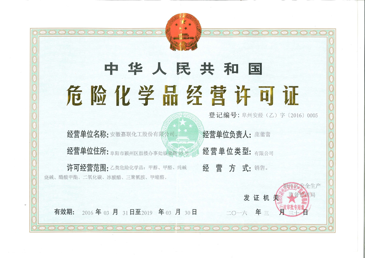 嘉聯(lián)化工危險(xiǎn)化學(xué)品經(jīng)營(yíng)許可證